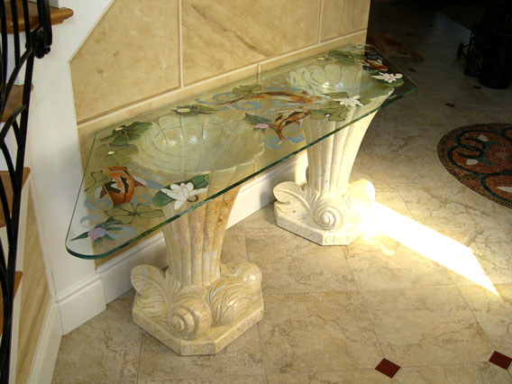 etched and painted glass table
